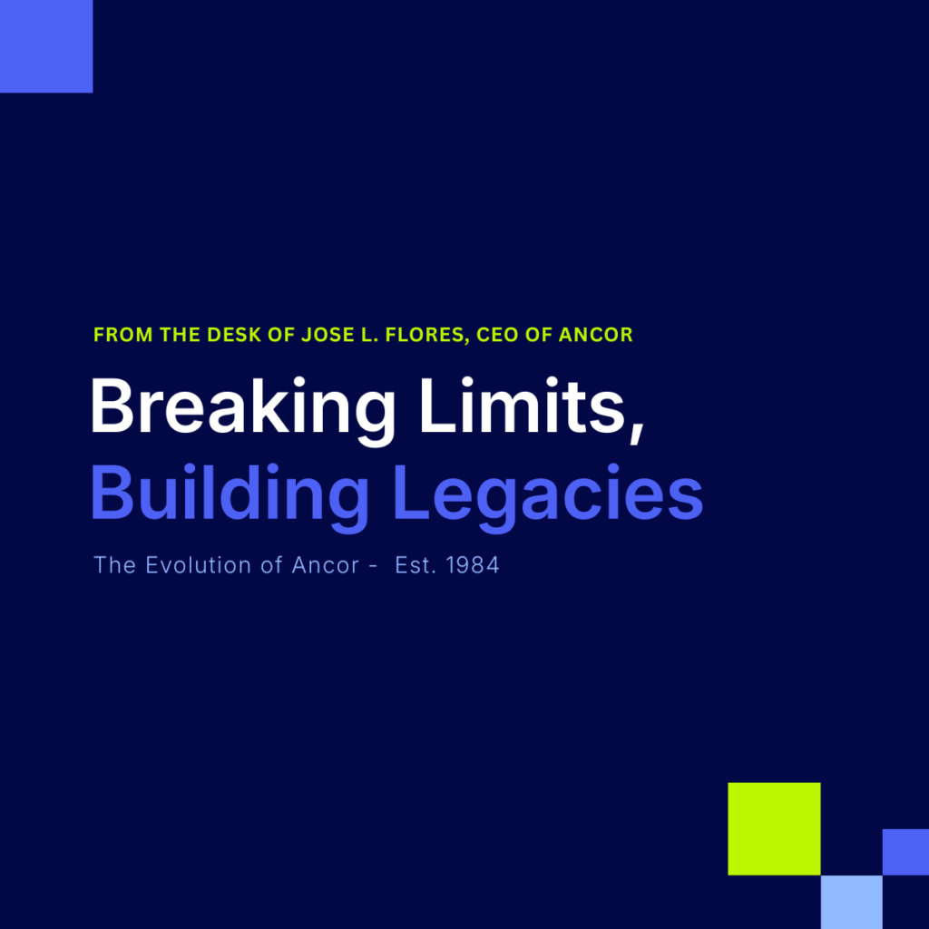 Jose L. Flores, CEO of Ancor, is passionate about transforming industries. He thrives on challenging old ways of thinking and turning bold ideas into real solutions that create lasting impact. As CEO, he brings a global perspective, a relentless drive for innovation, and a people-first mindset that pushes Ancor to break limits and build legacies for the communities it serves.